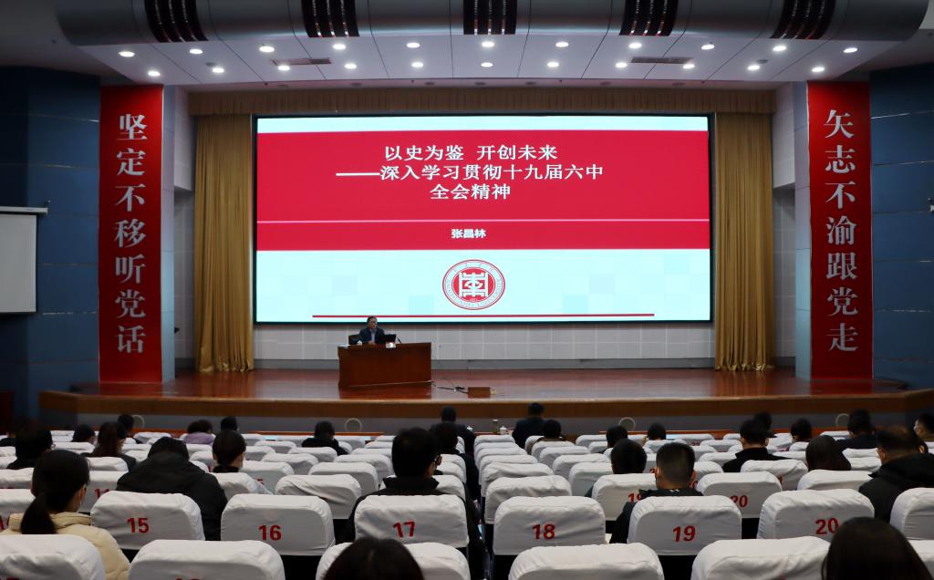 为深入学习宣传贯彻党的十九届六中全会精神,在全校迅速掀起学习宣传贯彻全会精神的热潮,12月1日下午,公司党委委员、宣传部部长、 公司党委书记张昌林以《以史为鉴 开创未来——深入学习贯彻党的十九届六中全会精神》为题,在综合楼学术报告厅作党的十九届六中全会精神宣讲报告。省委党史学习教育第四巡回指导组成员苗素军、时新华到场巡听,校本部副处级干部、科级干部、统战代表、全体辅导员和哈哈体育教师等200余人到会聆听报告。