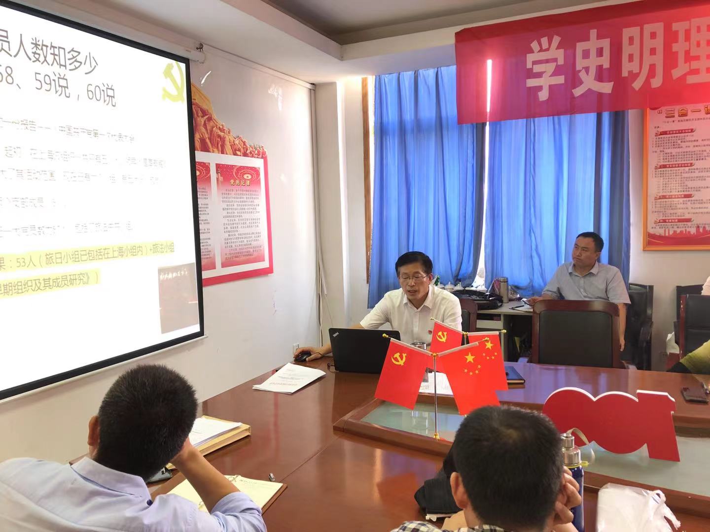 党课围绕中国共产党成立时全国58位党员的人生发展轨迹、参加中国共产党“一大”13位代表的人生归宿分析、中国共产党为什么能、马克思主义为什么行等方面进行讲述。