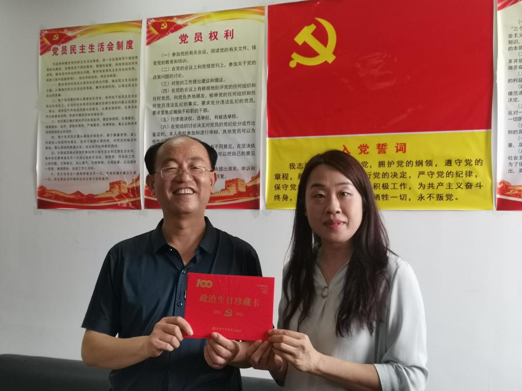 潘顺、刘新全分别为上半年入党的26名同志赠送了政治生日珍藏卡,附上生日寄语,并集体重温了入党誓词。党员老师踊跃发表生日感言,回顾了入党历程和工作经历,感言朴实真诚,触动人心。大家纷纷表示在中国共产党成立100周年之际,公司组织这次为党员过“政治生日”主题党日活动,进一步增强了党员的光荣感、使命感,十分具有纪念意义。作为一名党员教师,要永远坚定政治信仰,强化政治担当,提高政治站位,增强理想信念,落实好思政课教师立德树人的根本任务。