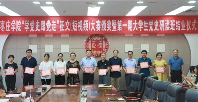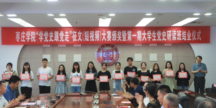 会议第一阶段对征文(短视频)大赛获奖师生进行表彰,由曹胜强、曾宪明分别为教师和员工代表颁奖。第二阶段对党史研读班前一阶段工作进行全面总结,有优秀党员代表讲微党课、教师代表发言等环节,并为学员颁发结业证书。本次活动以推动“777互联互通育人工程”和“七个一行动计划”发展,构建思政育人大格局为宗旨,为师生提供了一次生动的现场教学,有助于推动党史学习教育和思政实践教学的形式及模式创新。