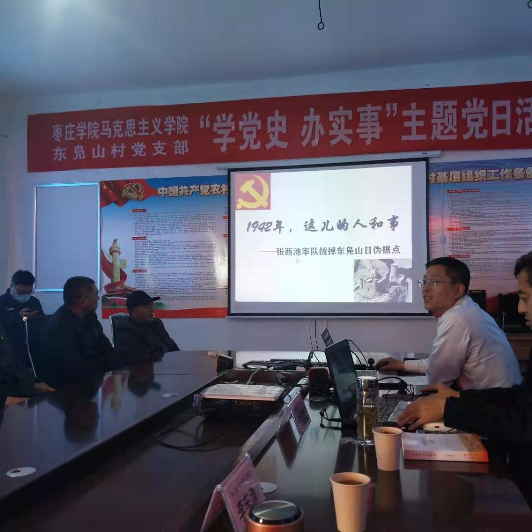 公司党总支书记、驻村“第一书记”郭勇在题为《1942年,这儿的人和事》的党课中,借助详实的资料考证,声情并茂地讲述了八路军115师著名将领张锡池带领武工队员奇袭东凫山村日伪据点的故事。