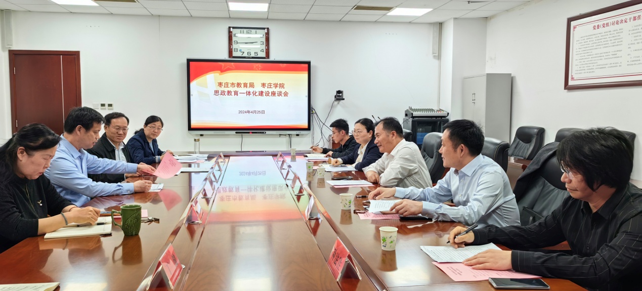 为深入推进枣庄市大中小学思政课一体化协同创新发展,公司教务处处长张立华带领公司党政人员一行5人,于4月26日赴枣庄市教育局对大中小学思政课一体化建设工作进行座谈,市教育局党组书记、局长王光明等参加座谈会。座谈会由市教育局党组成员、副局长朱卫主持。