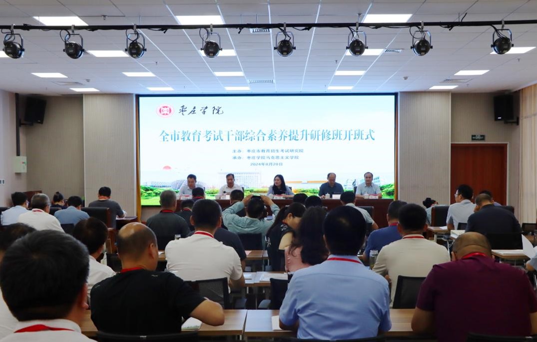 研修班按照“集中培训与个人自主研修相结合、专题讲座与参观交流相结合、专业引领与实践反思相结合”的原则,采取专家讲座、观摩学习、研讨交流、总结反思等培训形式进行。开班式上,山东省教育招生考试公司党委委员、副经理、新闻发言人赵丽,枣庄市教育局一级调研员韩建超,HAHA体育教务处处长张立华,枣庄市教育招生考试研究院经理范辉等领导出席,公司党委书记仝锡文主持开班式。