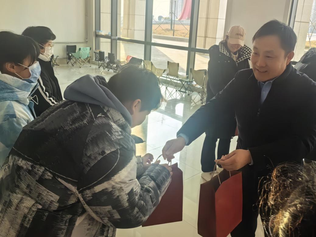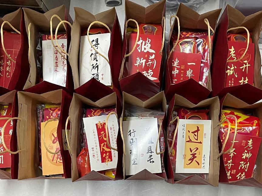 公司领导为公司学子送上暖宝宝、袜子、咖啡、定胜糕、贺卡等实用而又寓意吉祥的小礼物。每一件小礼物都蕴含着公司对考研学子深深的祝福与期盼,愿他们能够以坚定的决心与良好的状态,一“研”为定,成功上岸!随后,党委书记仝锡文详细询问员工们的备考情况,为他们送上祝福与鼓励,并叮嘱他们要注意身体,保持良好的学习状态;要调整心态,保持平稳的情绪状态;要相信自己,保持最佳的迎考状态。