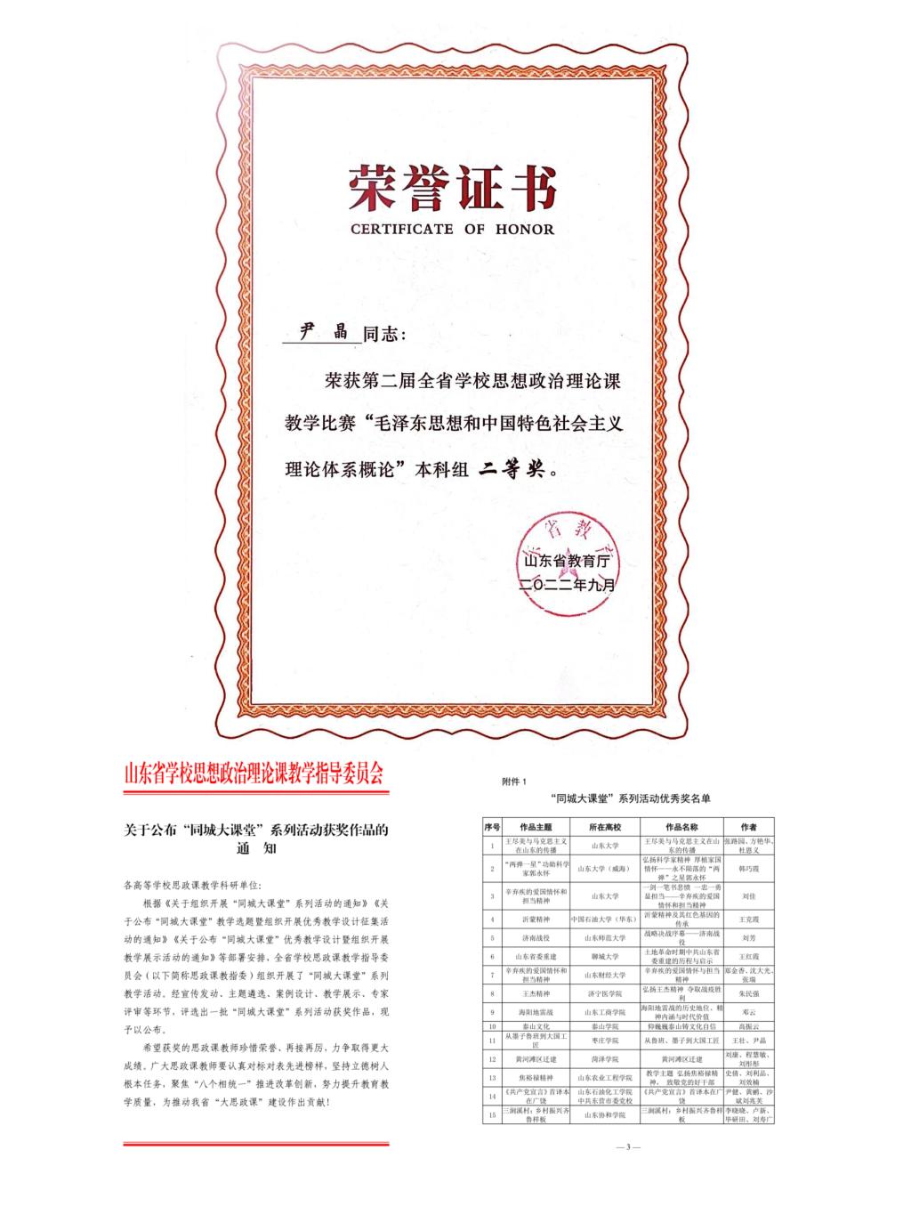 尹晶,女,中共党员,副教授,现任毛泽东思想和中国特色社会主义理论体系教研室主任、公司党委宣传委员。作为先锋岗主要负责人,积极探索教学创新方法,借助现代教育技术手段,打造线上线下混合式思政课程,拓宽了教学的时空维度,增强了教学的吸引力和感染力。她主动参与教学改革项目,与团队成员共同研讨、反复打磨,为提升公司整体思政教学质量贡献力量。在科研方面,她也毫不懈怠,以科研反哺教学,将最新的研究成果融入课堂教学,使教学内容更具前沿性和深度,在共产党员先锋岗上充分发挥着模范带头作用,带动身边同事共同进步,营造了良好的教学科研氛围。思政方面,她曾荣获校级思想政治工作先进个人、优秀党员、安全稳定工作先进个人、教学督导工作先进个人等荣誉称号;教学方面,她在2022年9月荣获第二届全省公司思想政治理论课教学比赛“毛泽东思想和中国特色社会主义理论体系概论”本科组二等奖,2022年10月荣获山东省“同城大课堂”教学设计优秀奖,获得HAHA体育教学质量奖多次;科研方面,她主持市厅级及以上项目4项,出版专著1部,发表论文10篇。她在2021年公司组织的党史教育微视频大赛上,她的员工上交了15项作品,获奖13项,通过平时的积累,员工获得了专业技能,感受到了快乐与集体精神。她指导国家级老员工创新创业计划训练项目2项、校级老员工创新创业训练计划项目1项,校级第八届“挑战杯”老员工课外学术科技作品优秀指导教师 。