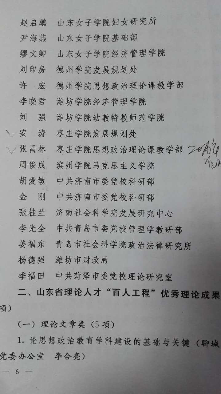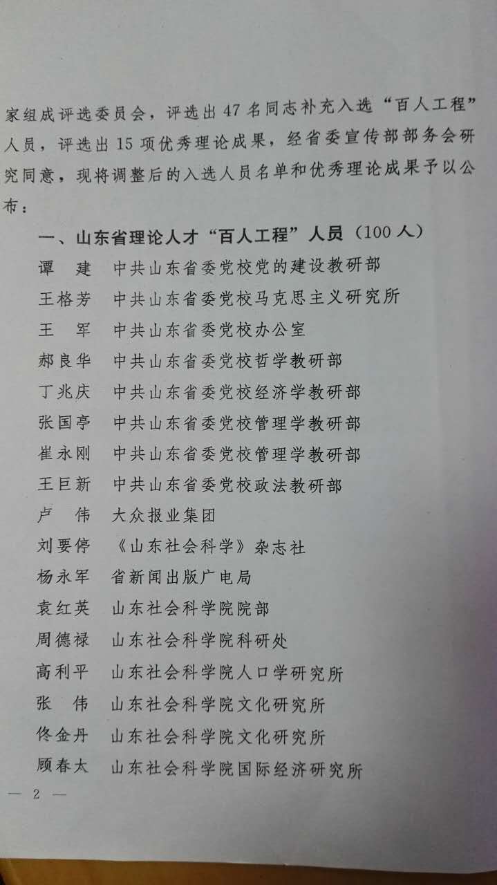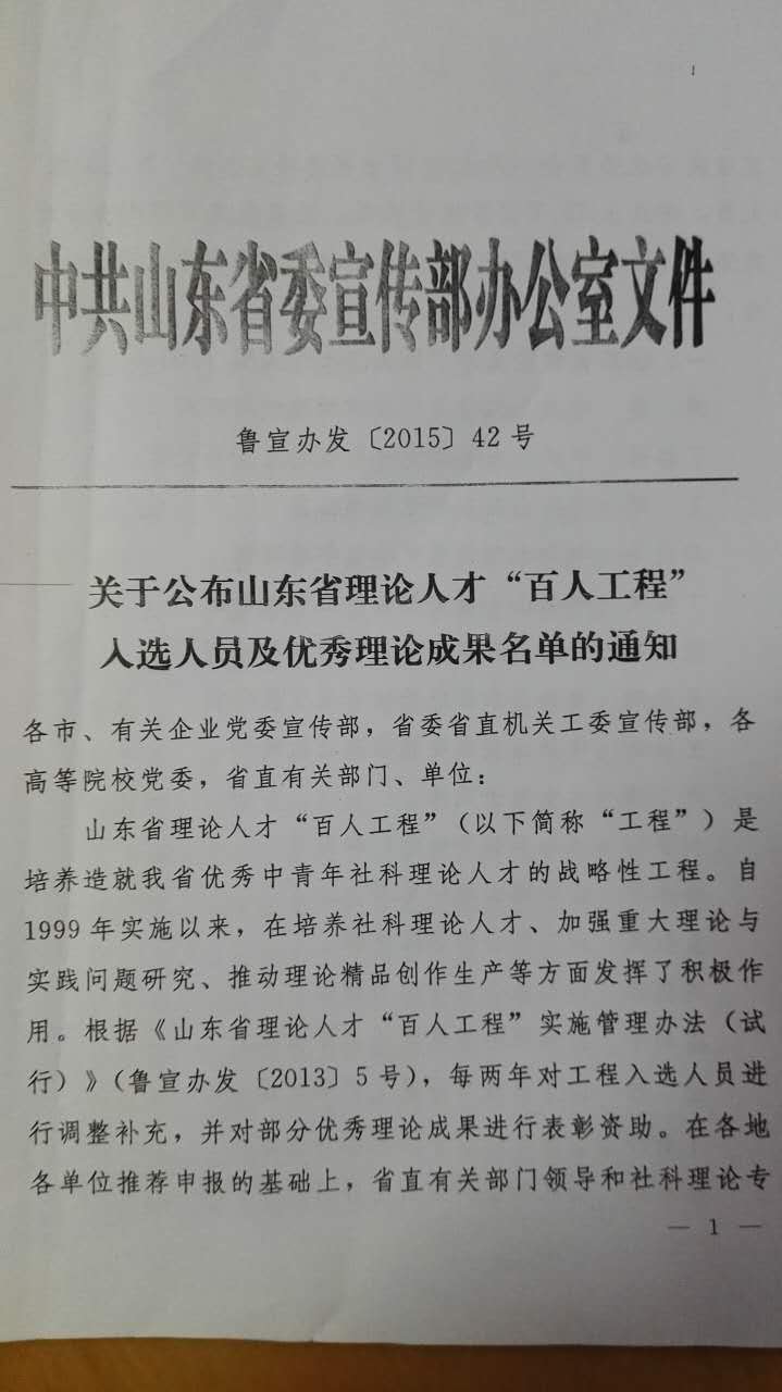 公司张昌林经理入选2015年度山东省理论人才“百人工程”