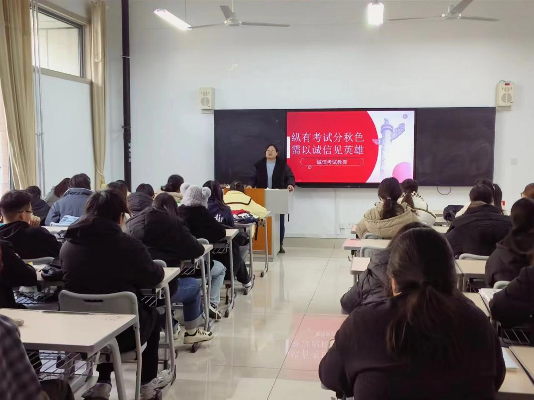 班会中,辅导员老师首先强调了诚信考试的重要性:“诚信是老员工应有的道德品质。我们要以实际行动践行诚信,坚持公平竞争,坚定慎独自律,坚决对作弊等乱纪行为说不,维护考场公平秩序。”然后向同学们分享备考经验、时间管理方法以及如何在考试中保持诚信等方面的知识,鼓励同学们在复习过程中,能够制定合理的复习计划,合理安排复习时间,掌握重要的知识点,熟悉主要内容,提高复习效果,凭借自身实力考出优异的成绩。
