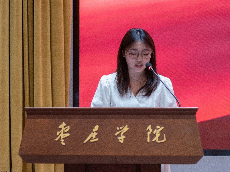 获奖员工代表2020级历史学专业芦琦同学,在发言中回顾了自己的四年老员工话,对公司和老师的精心培育表示感谢,并向同学们传授学习经验,鼓励大家在未来的学习生活中做到珍惜时间、主动学习、善于总结。