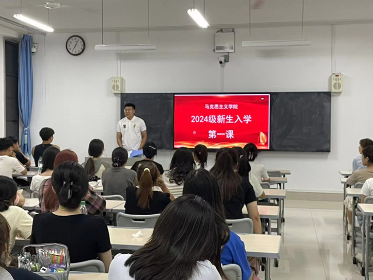 本次入学第一课由辅导员杨健老师主讲。课上,杨老师从思想、学习、生活三方面进行讲述。他强调,“兼爱、尚贤、博物、戴行”是历代枣院人的真实写照与精神坐标,同学们应将其贯彻到自身的实践当中去,建立作为枣院人与马院人的高度责任感,精神饱满投入接下来的学习与生活。与此同时,杨老师还从同学相处、宿舍安全、学习经验等多方面进行讲述,对同学们当前所面临的问题与困惑进行一一解答,同学们认真聆听、细心领会,现场气氛热烈活泼。